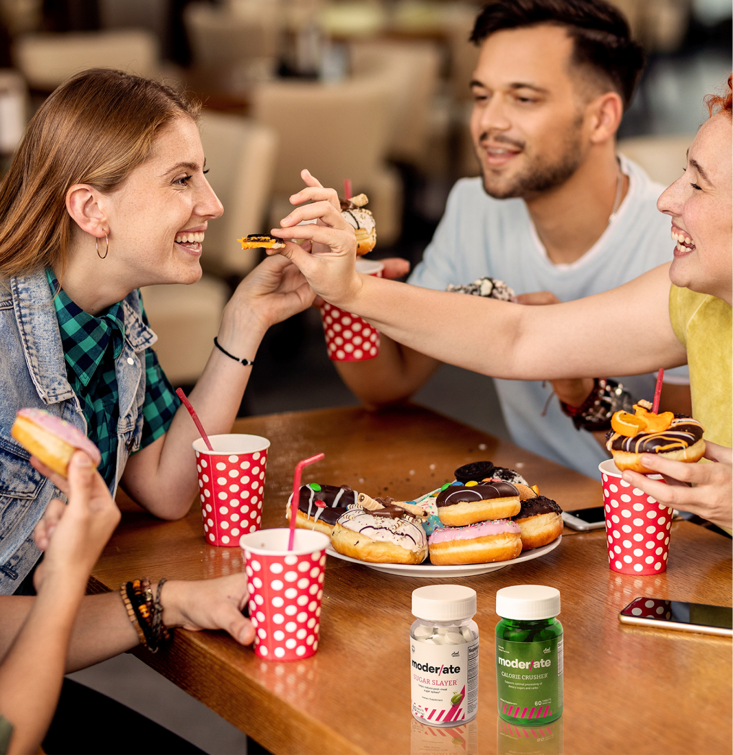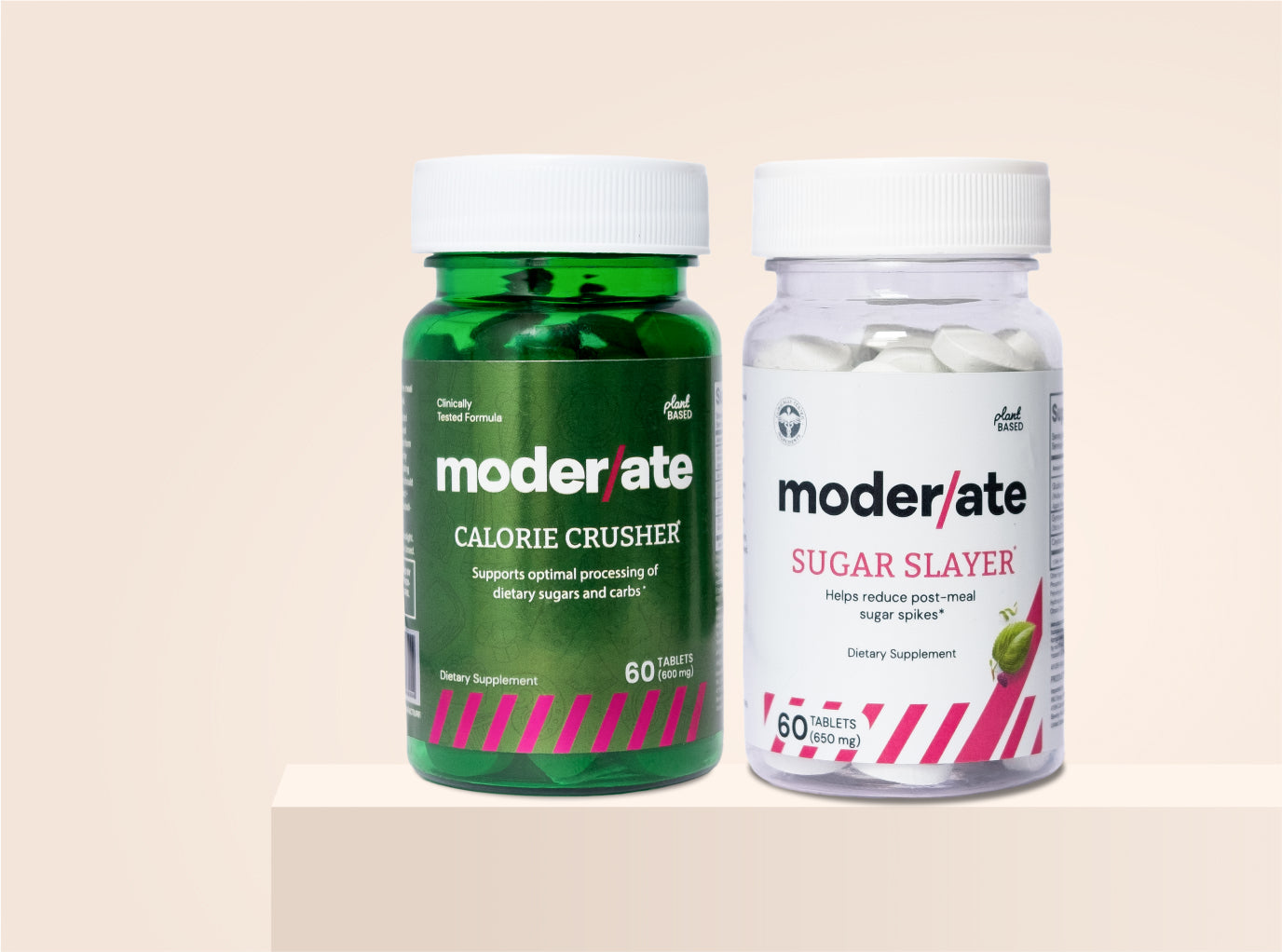Moderate tablet is made with 100% botanical proprietary blend scientifically proven to temporarily block the enzymes responsible for breakdown of carbohydrates to simple sugars, hence less amount of sugar is available for absorption. This means that only around 60% of the carbs / sugars that you eat are absorbed into your body. Rest is excreted out of the body, without being absorbed. This also results in reduced post meal blood sugar spikes as has been proved in Multiple clinical studies.